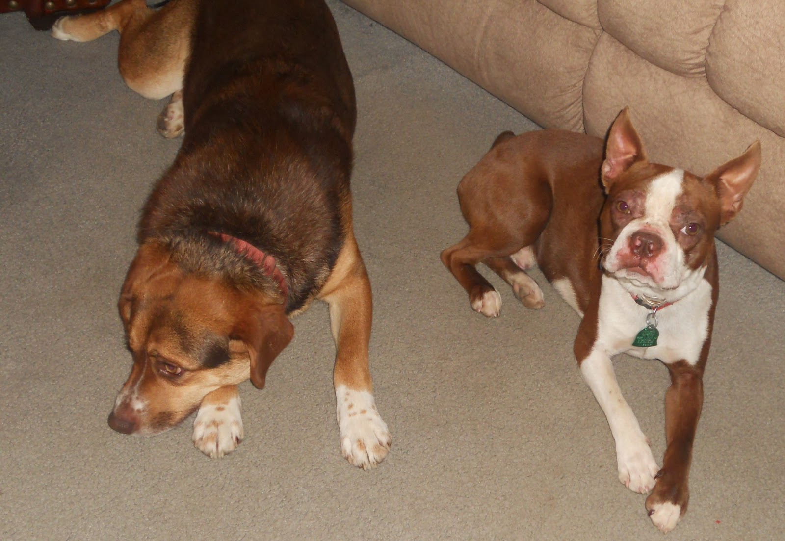 I love rib eyes, but there's about as much fat on them as there is meat. Peaches and Bugsy, however, were delighted with the scraps and did NOT complain. They're eating a little better now, and the hair is starting to grow back on Bugsy's face from where the skunk sprayed him. He still looks a little beat-up, though. They've been spending the nights in the house, and they love it!